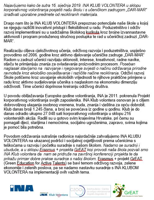 INA KLUB VOLONTERA NA RADIONICI IZRADE UPORABNIH PREDMETA OD RECIKLIRANIH MATERIJALA
